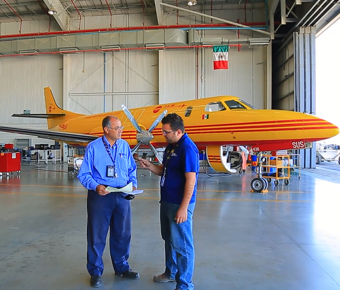 “Aeronaves TSM has an approximate surface of 15000 m2, inside the Plan de Guadalupe International Airport. We have administrative offices, FBO, maintenance workshop, painting workshop, engine workshop, Engineering Building, warehouse, general aviation ramp and flight simulators.”